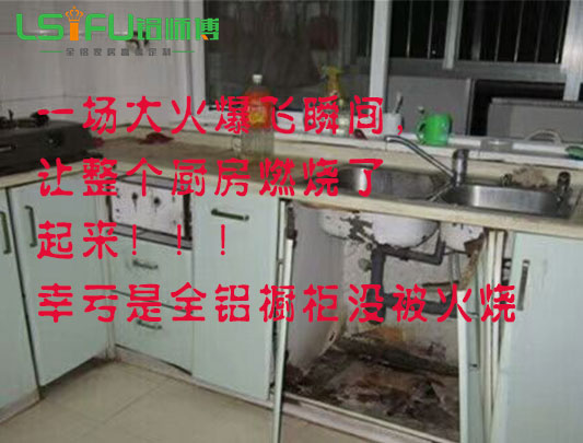 十大全鋁家居可防火爆、耐高低溫以下這張圖是最近發生的真實案例,第一張:廚房被火燒燃燒,剩下的是一個全鋁櫥柜,看起來真是讓人心酸啊,還好是廚房安裝的是全鋁櫥柜,不然如果是一個實木櫥柜這可更慘了,相信連骨頭都沒有了,還好業主聰明安裝全鋁櫥柜,或者說是他比較幸運吧,所以我們看到的是整個廚房都燃燒起來,如果全鋁櫥柜周圍都是鋁材及是瓷磚墻面,沒有電線或是其他可燃物品,那么,就可以大大降低廚房燃燒的幾率。