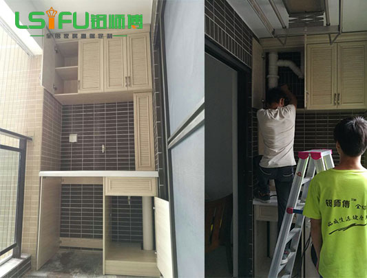 鋁師傅全鋁浴室柜定制正在安裝現場圖
