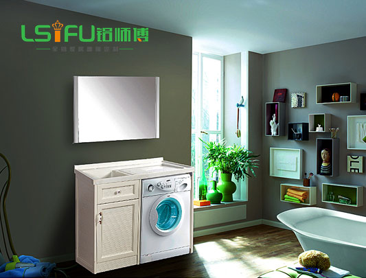 落地式全鋁合金仿實(shí)木洗衣機(jī)浴室柜