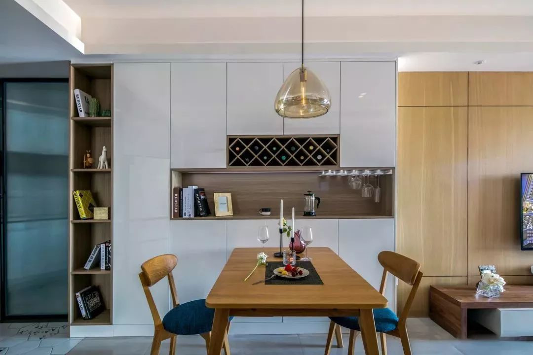 4、全鋁餐邊柜+卡座:餐邊柜+卡座的設(shè)計(jì)可謂是小戶型的“寵兒”,卡座本身就是一個(gè)節(jié)省空間的利器,再加上餐邊柜,直接增加了餐區(qū)的儲(chǔ)物空間,好看又好用~