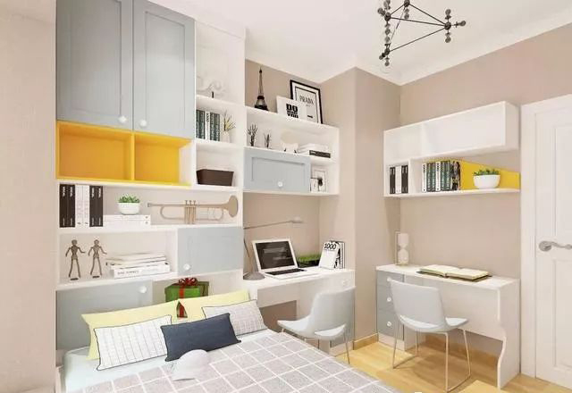 只要伴侶不介意,戶型比較緊湊、房間不夠用的家庭,其實利用臥室的某角落,也足夠打造出功能齊全的工作區!工作和生活越來越緊密,書房和臥室的界限也正在模糊~兒童房建議可以將收納、休息、學習區集中起來,再通過家具去形成分區,這樣子孩子們才是真正有自己的小天地,并且井井有條。