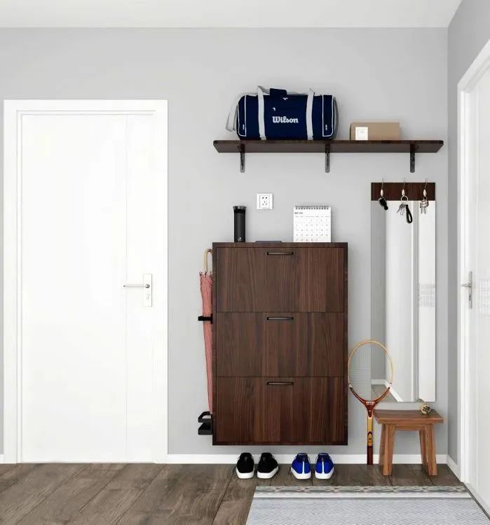 11. 進(jìn)門(mén)凹位設(shè)計(jì)矮柜,底部留空放常用鞋。