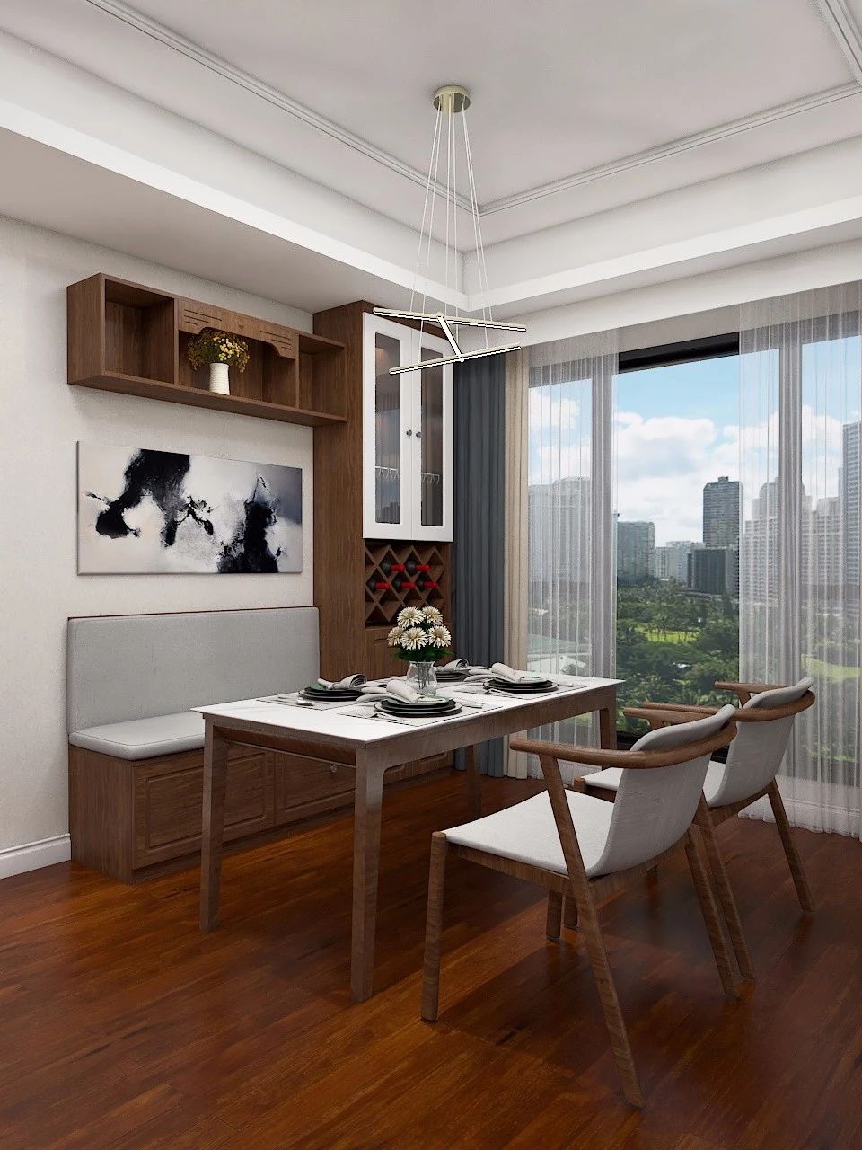 如果餐廳面積足夠大,那么餐邊柜的發(fā)揮空間自然也就大了,整墻到頂設(shè)計、多功能組合設(shè)計等形式就都能輕松玩轉(zhuǎn)。