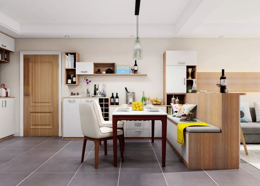 卡座式餐邊柜可以說是小戶型餐廳的救星,不但能增加用餐區(qū)的收納能力,還能增添用餐情調(diào)。定制吊柜上墻,收納展示兩不誤。卡座肚里還能“撐船”,收納力up!