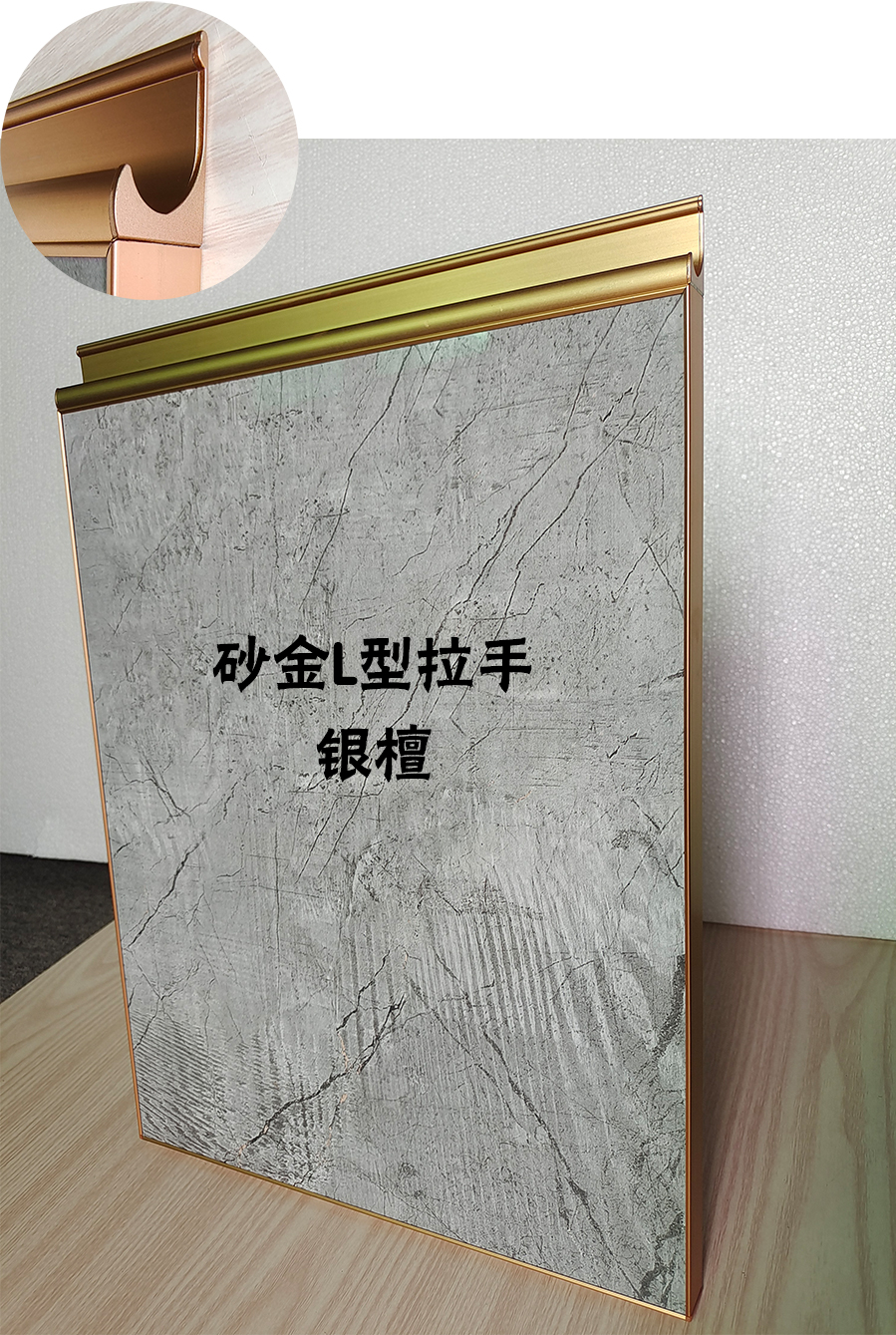如果不喜歡柜門之間留槽的話,也可以選擇這種L型拉手,L型鋁拉手搭配抗油污蜂窩板,高端大氣上檔次!