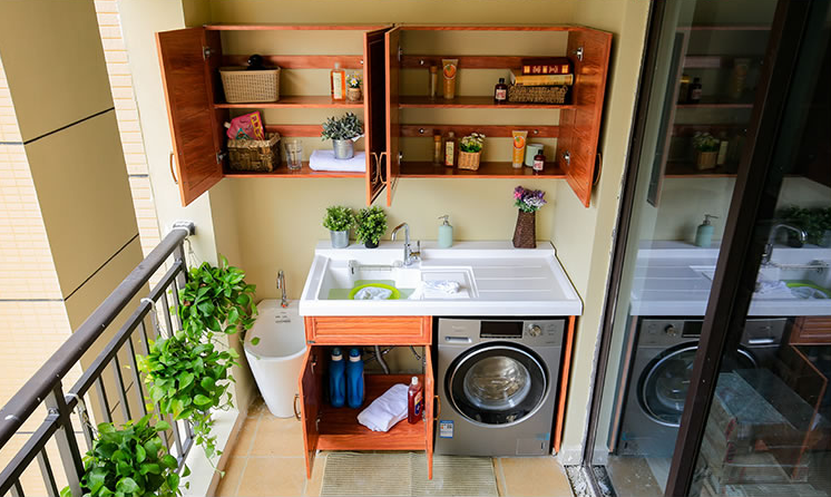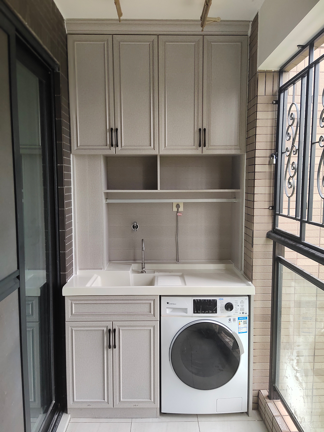 洗衣機放置最好用的空間莫過于陽臺,節省了衣物搬運的時間,動線最短,最方便。陽臺裝全鋁材質陽臺洗衣機柜,不怕風吹日曬雨淋,柜體防水防火防蟲蛀,結實耐用。