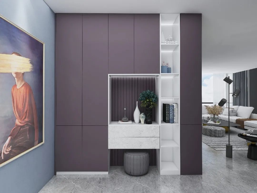 除了玄關柜,還可以定制全鋁電視柜、全鋁餐邊柜來擴大收納。還可以通過減少空間死角,來增加收納空間。