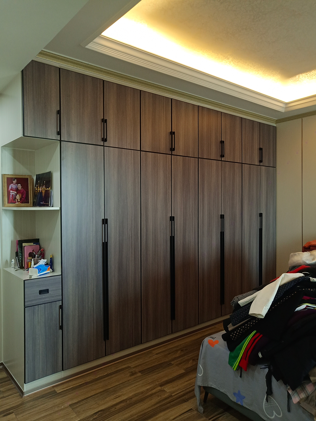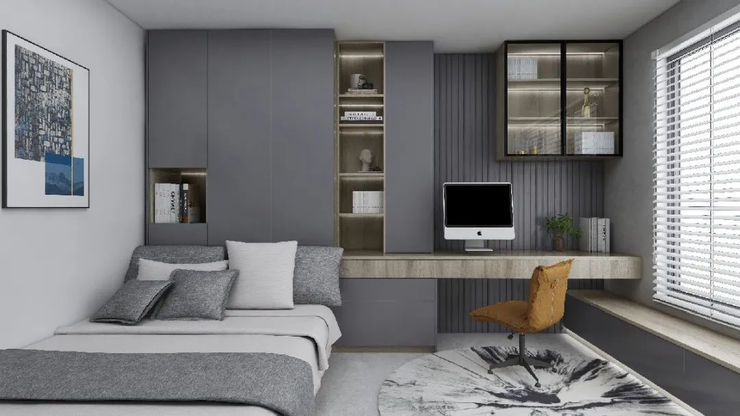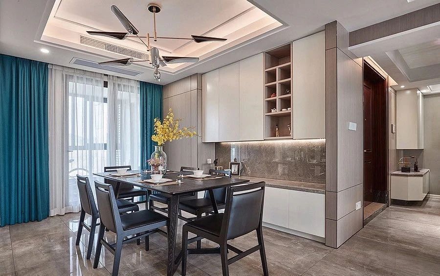 色彩可以對空間比例、面積、層次、氣質,起到加強或減弱的作用。像這樣,金色的加入,讓空間多了輕奢感。