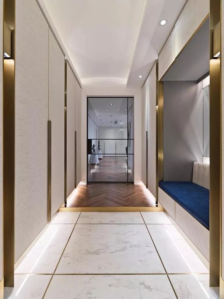 如果走廊的光線比臥室好,小編很推薦改造成梳妝區。走廊式玄關,打造一塊梳妝區,也有利于出門前整理儀容儀表。小建議是梳妝臺最好做成懸空設計。