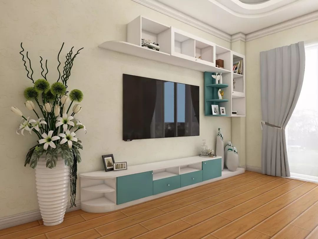 以簡約風為主,占地空間小,易移動,在地柜的上方放電視,讓整體電視柜都展示出簡約之感,也是最常見的一種電視柜款式。