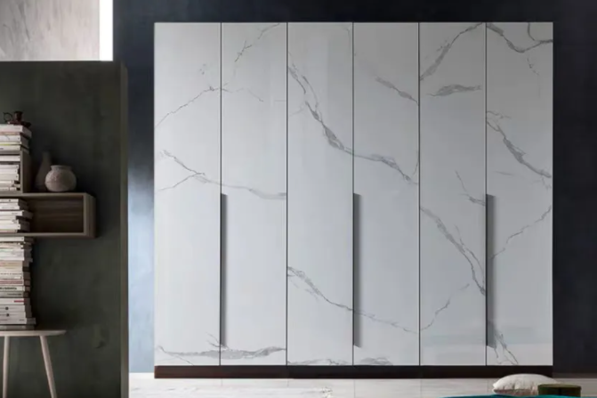 還有在“高定”中風頭無兩的巖板,由于可以做到3mm厚度的工藝突破,近來被大量應用在定制家具的飾面中,甚至還推出了“全巖板”家具。巖板的“大薄輕”以及紋理色澤的可塑性、性能的環保性,都讓其在高端定制中靈活應用,彰顯多元的設計表達。